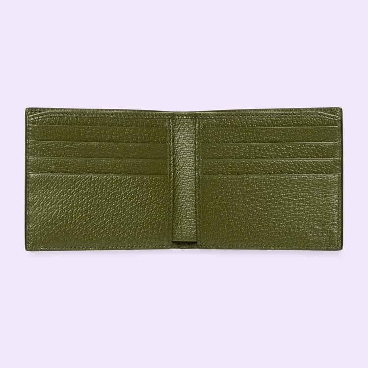 Style 428726 DJ20F 3352The Gucci color palette is constantly evolving to include more refined hues. New colorways and combinations result in a modern reinterpretation of the House's signature GG Marmont line. This bi-fold wallet is crafted from forest green leather, while the logo hardware appears in a palladium tone.