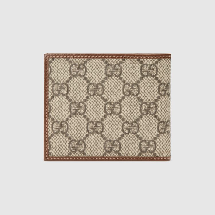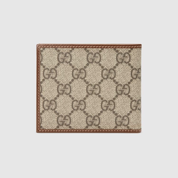 Style 671652 92TCG 8563Archival fabrics and details combine to give a selection of accessories a vintage appeal throughout the Gucci Aria universe. Here, this slim wallet is presented in GG Supreme canvas and enriched by a tonal leather trim and Interlocking G tag.