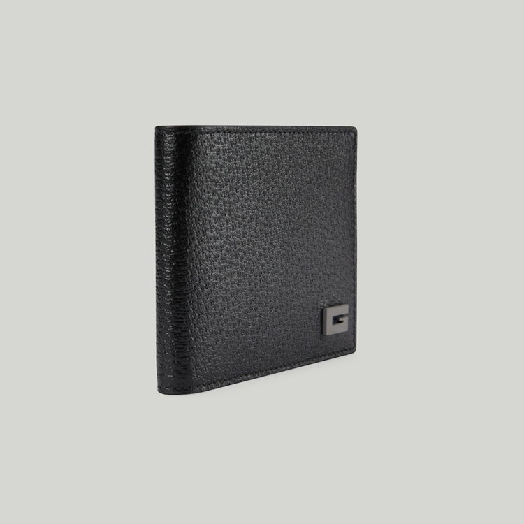 Style 739358 1AAJA 1193The Square G, revived from the Gucci archives, appears in a new bold iteration. The contrasting shade of grey atop this card case wallet in black leather adds a contrast to this small everyday accessory. Inside features eight card slots and two bill compartments.