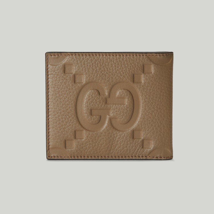 Style 739475 AABY0 2801The GG embossing transforms small everyday accessories into contemporary companions. New textures and finishes continue to feature prominently throughout Gucci's latest collections, offering dynamic and unique offerings. This wallet appears in taupe leather with a maxi version of the logo appearing allover.