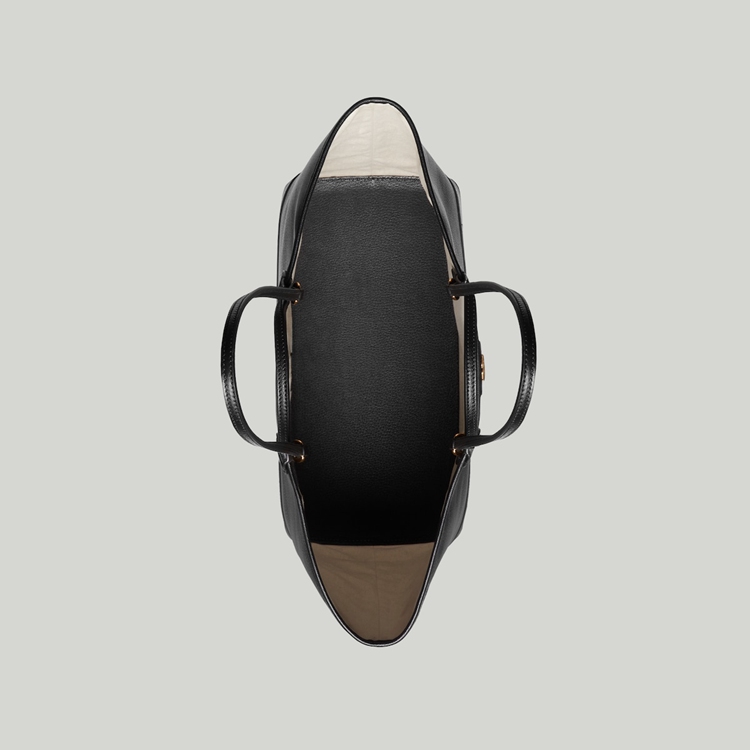 Style 739729 DJ20G 1000The large size Ophidia bag returns as part of the Spring Summer 2023 collection, presented here in a soft black leather. Taking inspiration from the House's archives, the Double G motif creates a stark contrast with gold-toned hues. The double straps offer increased versatility in styling, allowing it to be worn as either a shoulder bag or a top handle.