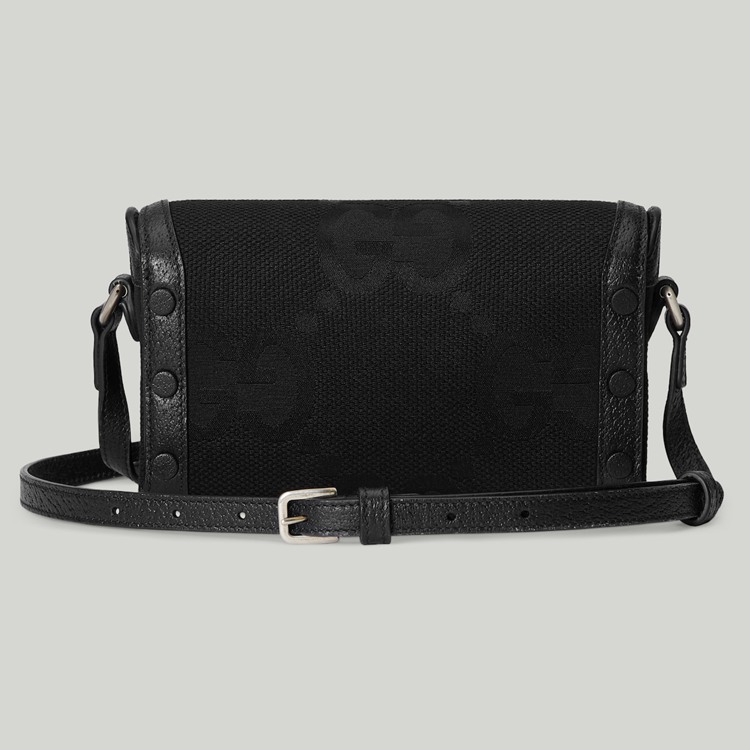 Style 699296 FABGN 1000Signature small leather accessories from the jumbo GG line spotlight an all-black design for Spring Summer 2023. A reinterpretation of Guccio Gucci's initials, the GG features prominently in maxi size for a distinctive logo feel atop this Gucci Horsebit 1955 mini bag.