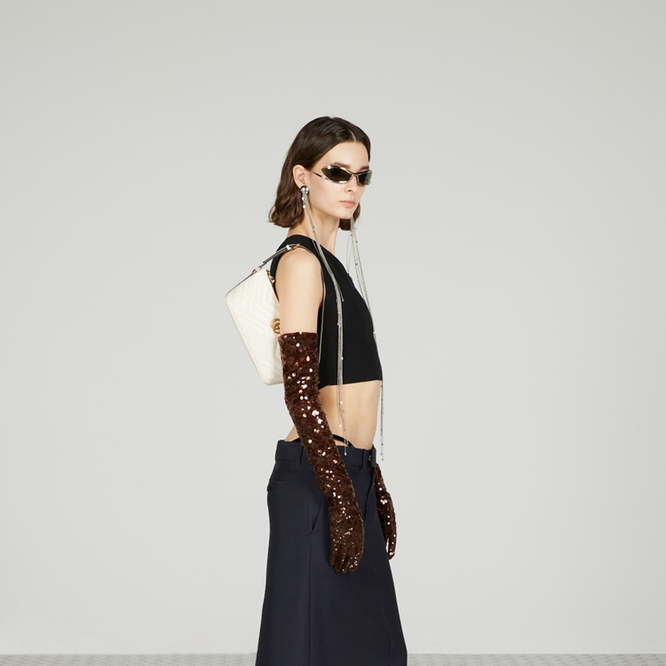 Style 739166 AABZB 9022With its recognizable matelasse fabric and Double G hardware, the GG Marmont has become synonymous with the House. Continuously reinvented through the seasons, new shapes are introduced within this signature line, matching Gucci's contemporary vision. Presented here in white leather, it's further enriched with antique gold-toned details.
