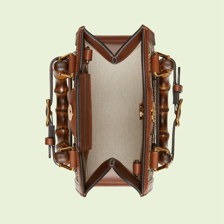 Style 707449 21HRG 2687Marking the House’s first in-person fashion show since February 2020, Gucci Love Parade unfolded along Los Angeles' walk of fame. Inspired by the timeless nature of old-Hollywood glamour, the collection presents contemporary takes on traditional pieces. This Gucci Diana mini tote bag is presented in camel and ebony GG canvas with crystal - a refined addition to the emblematic silhouette.