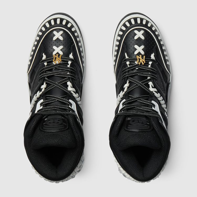 Style 723273 FAAZ4 1143The House’s historic codes once again meet those of Major League Baseball™ in a special capsule of ready-to-wear and accessories celebrating the crafted signature style of some of the most storied clubs in baseball, from the Boston Red Sox™, Cleveland Guardians™, Detroit Tigers™, Oakland Athletics™, New York Mets™, New York Yankees™ and Pittsburgh Pirates™. This Gucci Basket sneaker brings to the forefront the New York Yankees™ logo detail.
